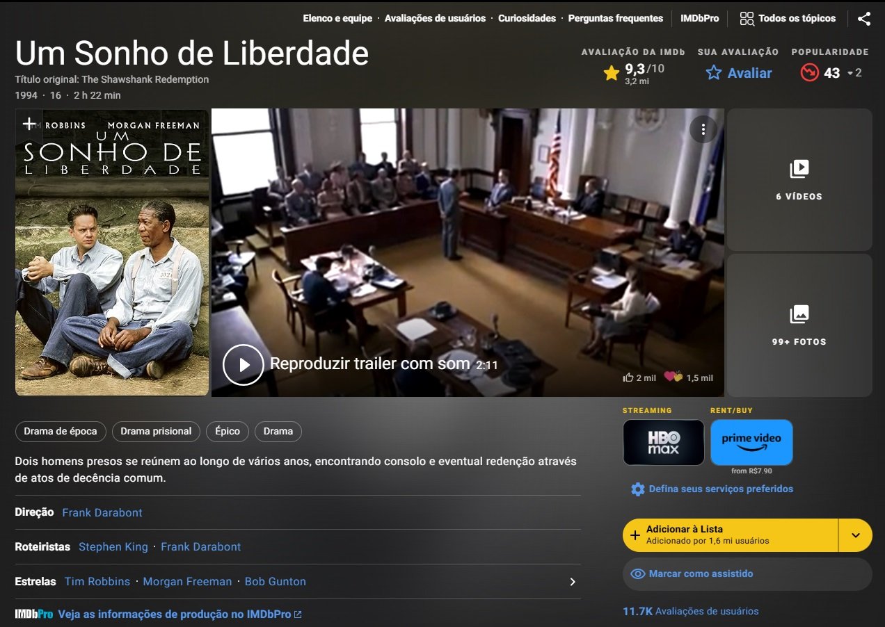 Esse reconhecimento não se deve apenas à narrativa envolvente, mas também à força emocional do roteiro, às atuações memoráveis e à mensagem atemporal de que a esperança é algo que ninguém pode tirar de um homem. É justamente essa combinação que faz de Um Sonho de Liberdade uma obra essencial, capaz de emocionar, provocar reflexão e permanecer relevante independentemente do tempo ou do contexto social.
